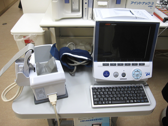 血圧計測および動脈硬化の程度を評価します。また下肢動脈の狭窄や閉塞の可能性があるか評価します。